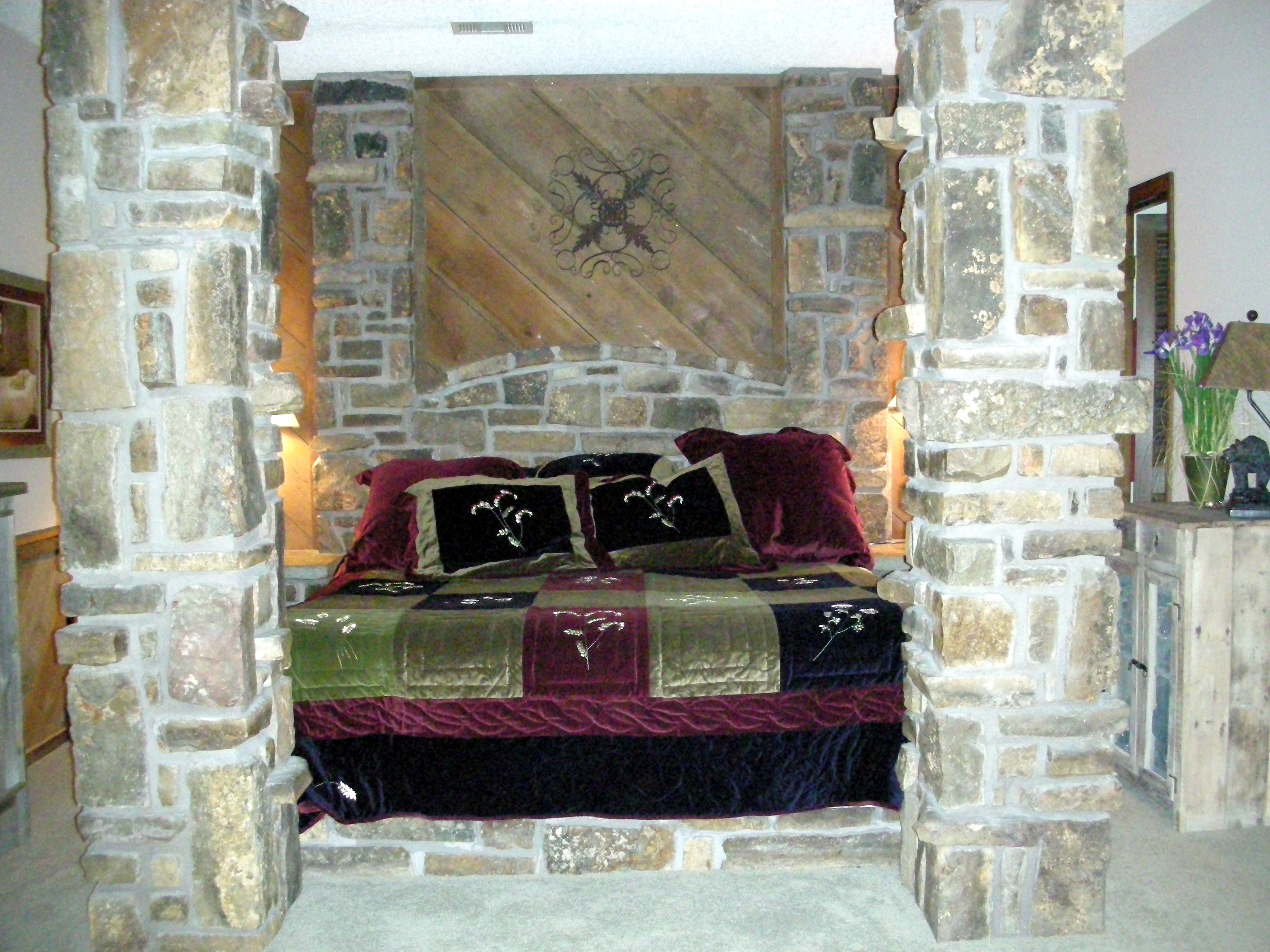 Stone Bed with Four Posts, Stone Base and Nightstands